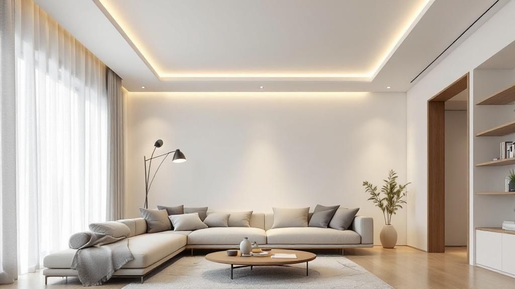 Beyond its practical side, the real appeal of a gypsum board ceiling is its incredible design potential. This is where your ceiling stops being just a functional surface and becomes a genuine architectural statement. Think of gypsum board as a blank canvas for the fifth wall of your room. Its smooth, continuous surface can be shaped, curved, and layered in ways that were previously only achievable with costly and slow traditional plaster methods.