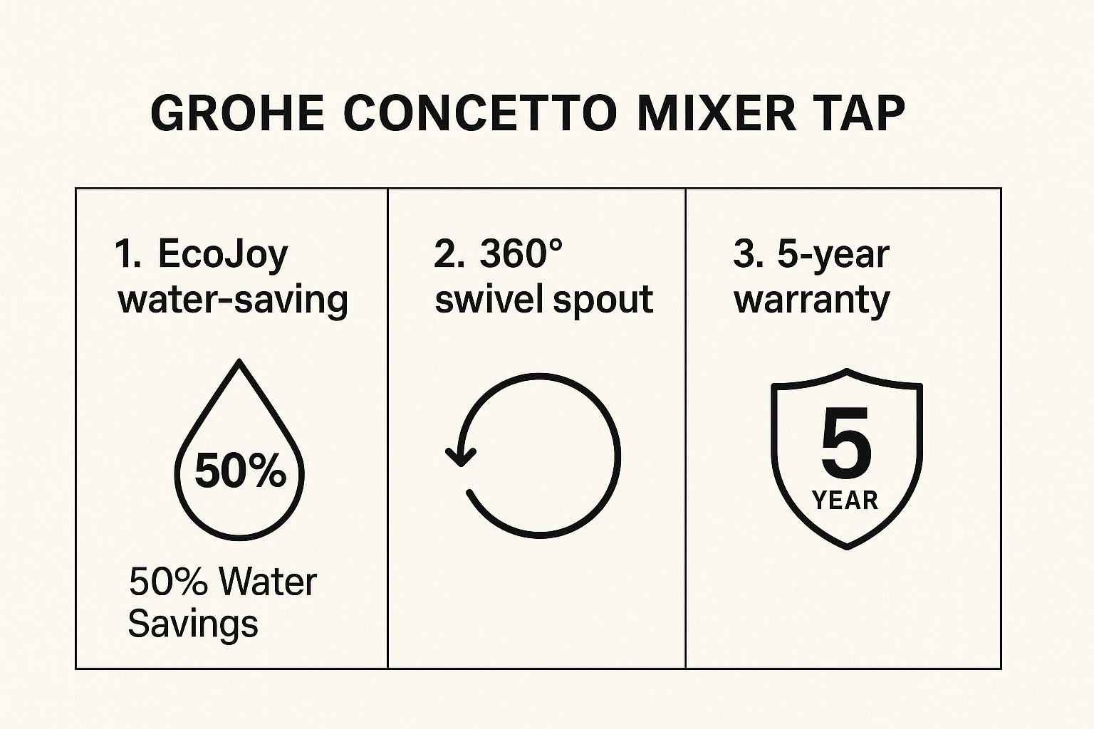 The following summary box highlights the standout benefits that make the Grohe Concetto one of the most sought-after mixer taps in the UAE.