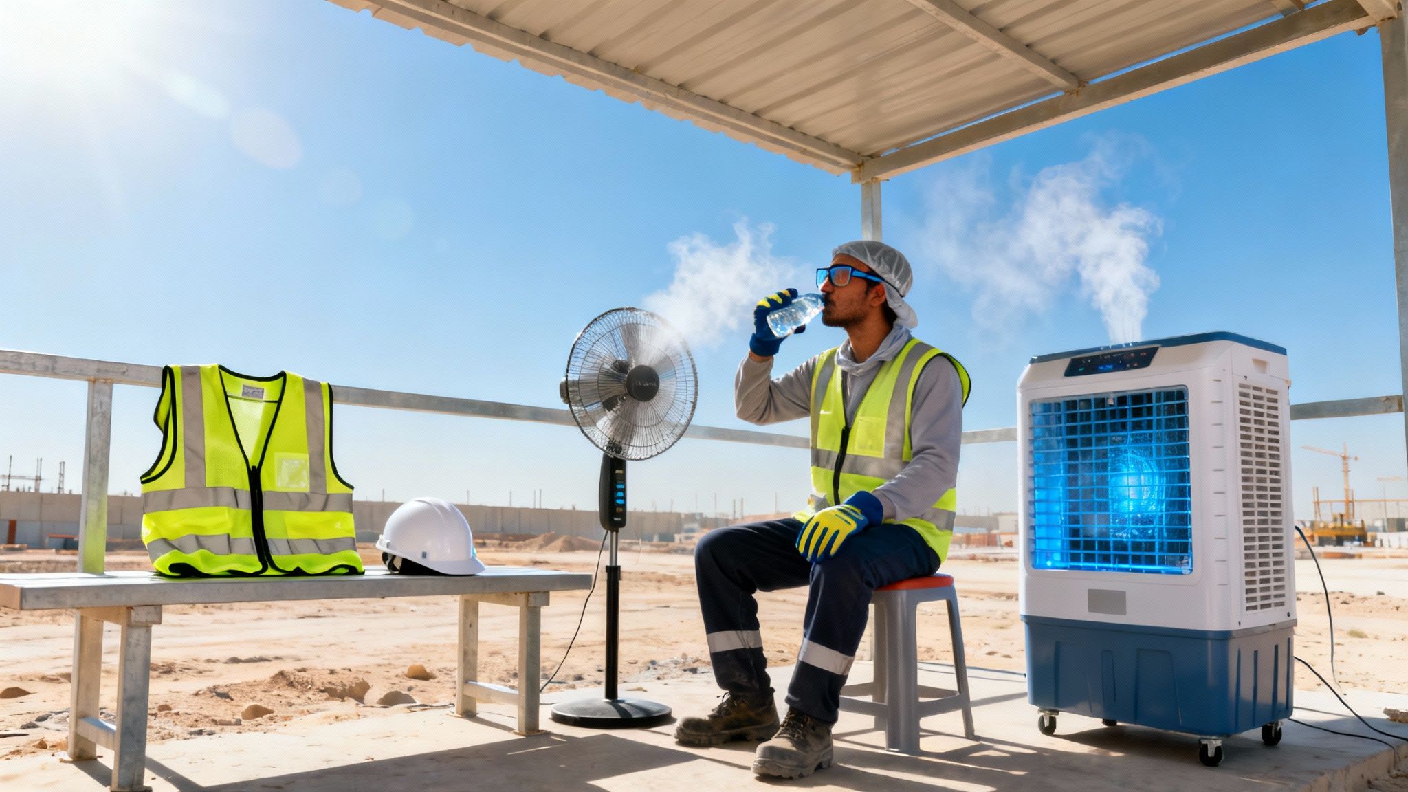 The best strategy is a two-pronged attack: powerful area cooling systems paired with effective personal cooling apparel. This combination is absolutely critical for creating safe microclimates on site, giving workers a genuine space to rest, recover, and avoid the serious risks of heat-related illness.